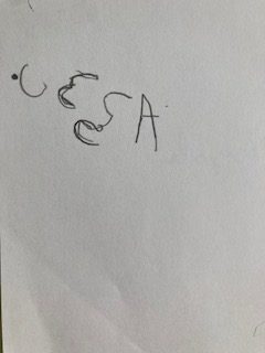 M commence par demander l’essai d’écriture Alex pour Alexandre parce que c’est ce qu’il y a de plus simple: c’est le début du prénom écrit tout simplement.