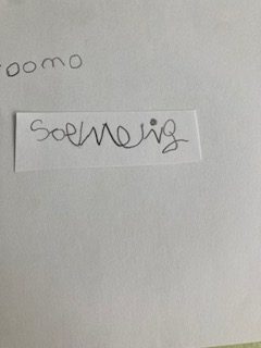 En atelier, M demande aux enfants s’ils peuvent trouver où est écrit « maman », où est écrit « coeur », et plus difficile où est écrit « soleil ». Les enfants sont très fiers.