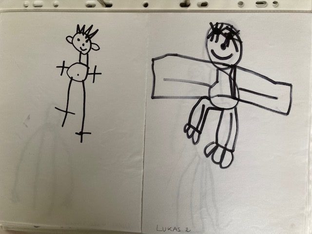 Exemple de 2 dessins à quelques jours d’intervalle et après le langage.